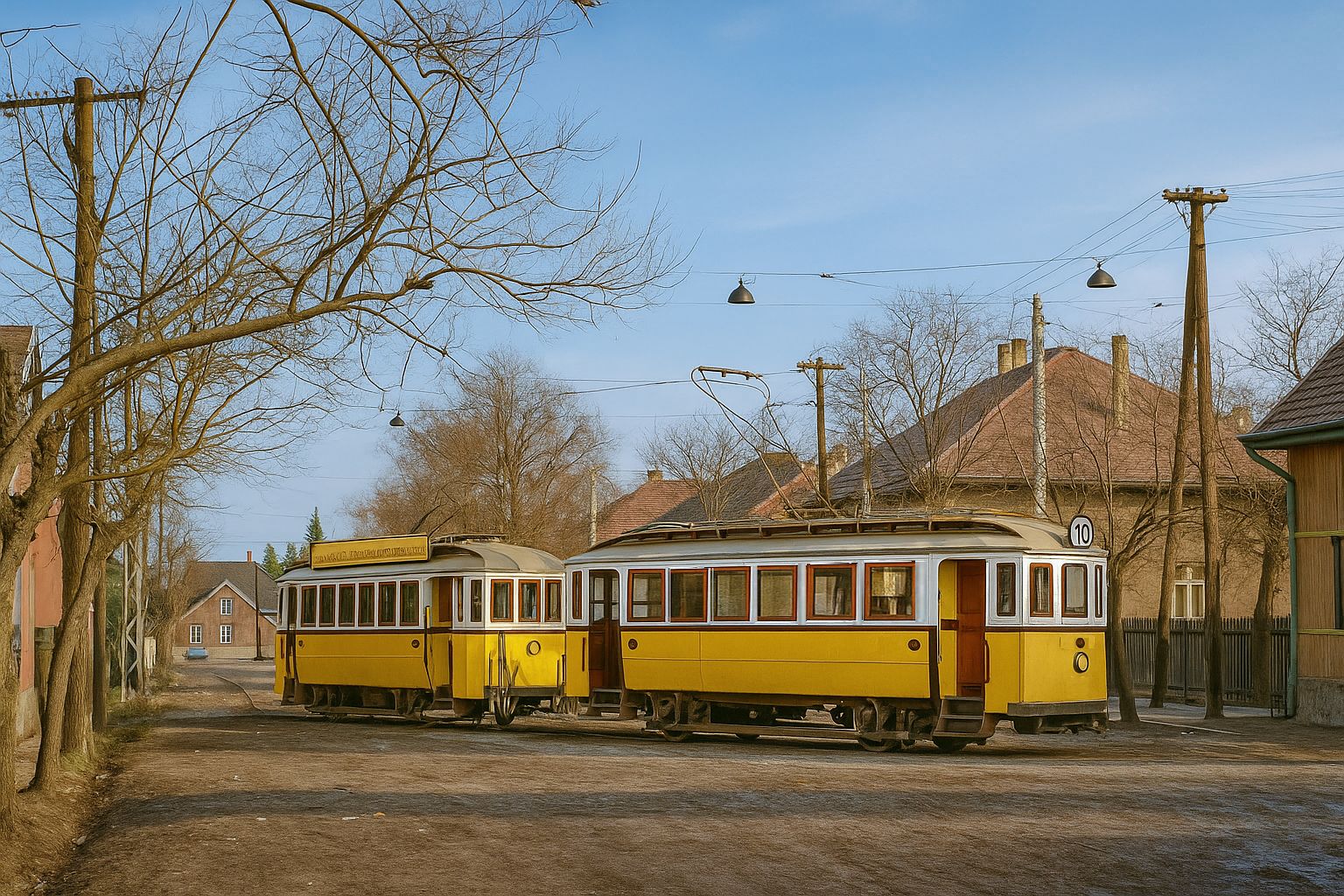 Ikerkocsi Rákospalotán a végállomási nagyhurokban, a 10-es villamos készül a Juhos utcából behajtani a  Kismező utcába, majd onnan a Kossuth utcán át újra elérni a Dózsa György (Fő) utat, 1969-ben.